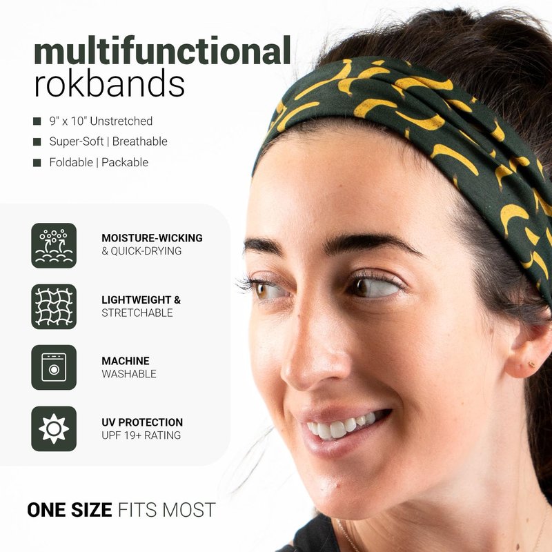 - UNIQUE DESIGN! Our RokBANDs are a multi-functional headband with a unique design that are engineered to be worn for all daily and physical activities. The fabric can be folded to the width or thickness you want, you can wear it as a headband, hair band, or even like a beanie. Unrolled completely, it makes an excellent scarf, neck gaiter, or can be twisted around a ponytail like a scrunchie or worn as a wristband!