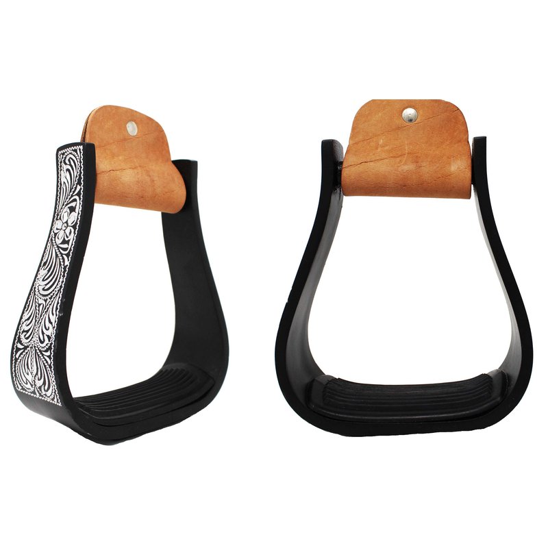 CHALLENGER 5" Wide Western Black Engraved Aluminum Horse Stirrups 51177