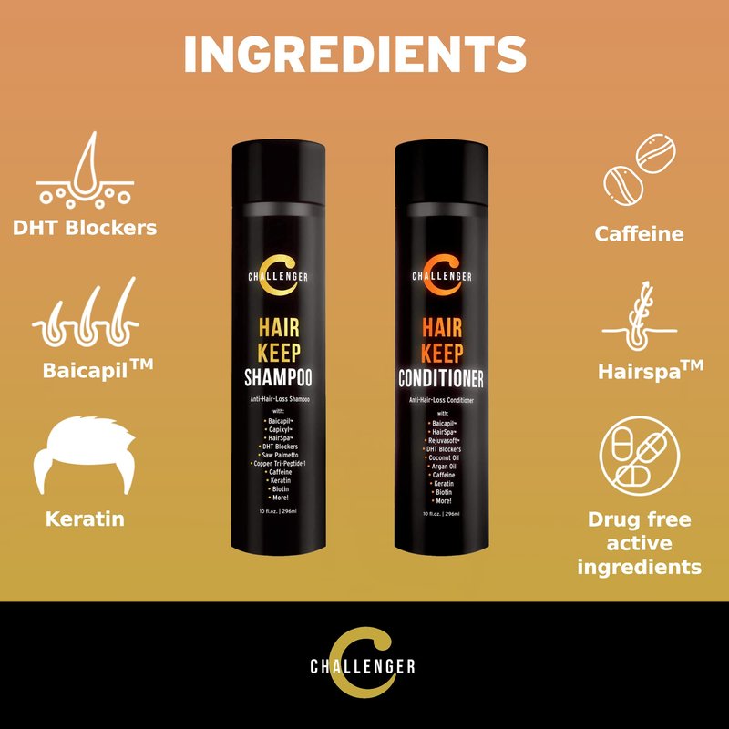 - Hair Keep Shampoo and Conditioner laboratory formulated with one goal. Provide as many premium, active ingredients to help combat hair loss and encourage hair growth as possible.