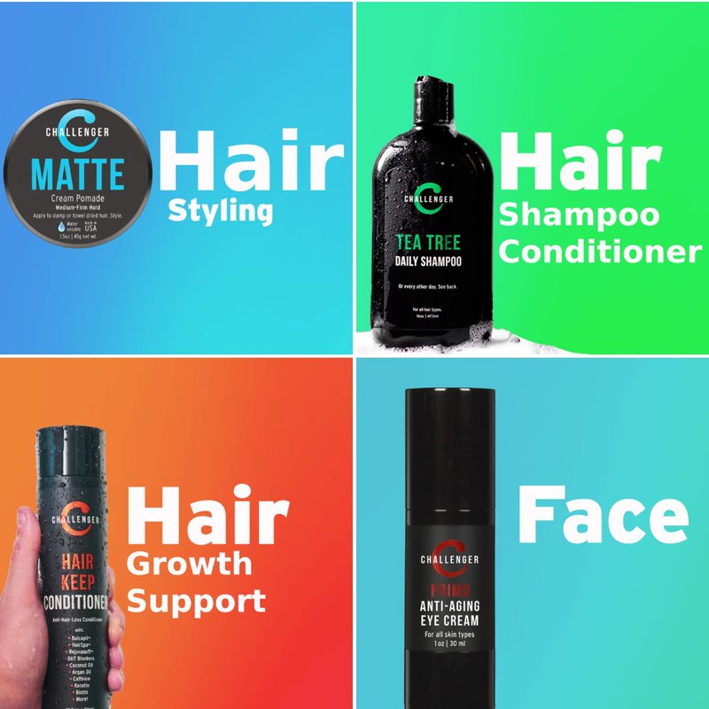 Challenger is back at it again with a premium shampoo, except this time our shampoo and conditioner have a new mission, which is to join the fight against hair loss with a premium shampoo and conditioner stacked with anti-hair loss as well as hair growth promotion ingredients. 10oz Challenger Best New DHT Blocking, Anti-Hair Loss Shampoo and Conditioner Combo - with Baicapil, Capixil, Rejuvasoft, HairSpa, Caffeine, Biotin, Hyaluronic Acid. Most Active Ingredients