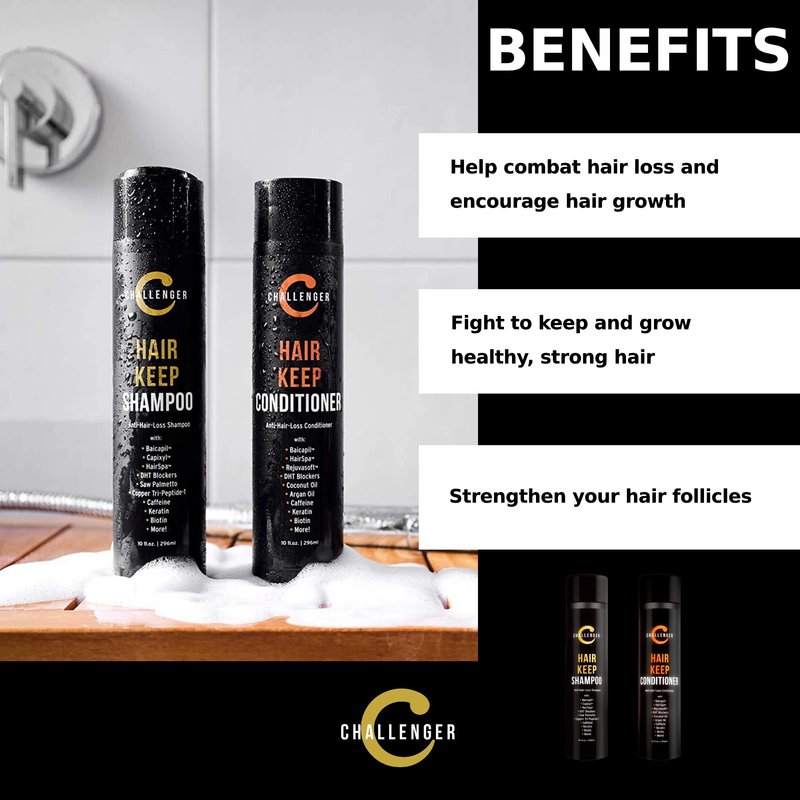 Challenger Men's Hair Keep Shampoo & Conditioner, 2X 10 Oz Bottles | Hair Growth Combo | DHT Blockers| w/Baicapil, Capixil, Rejuvasoft, HairSpa | Caffeine, Biotin, Argan Oil, Coconut Oil & more!