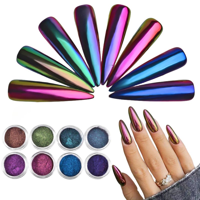 Chameleon Chrome Nail Powder Chrome Powder for Gel Nails,Nail Chrome Powder Shinning Chrome Pigment Mirror Glitter Chrome Powder for Nails Fine Glitter(8 Box)