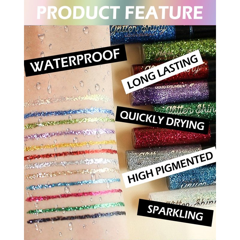 - Long Lasting & Waterproof - It is a waterproof, sweatproof, smudge-proof formula that dries quickly, so you don't have to worry about the color coming off, and the long-lasting, non-removal liquid glitter eyeliner dries to a long-lasting, shimmering finish that stays eye makeup all day long.