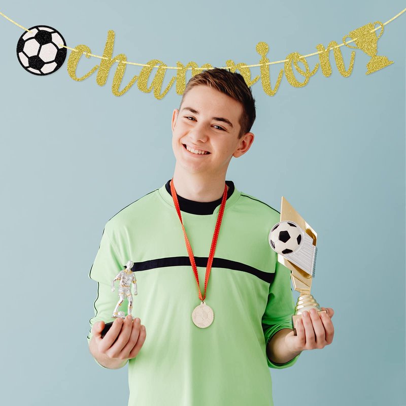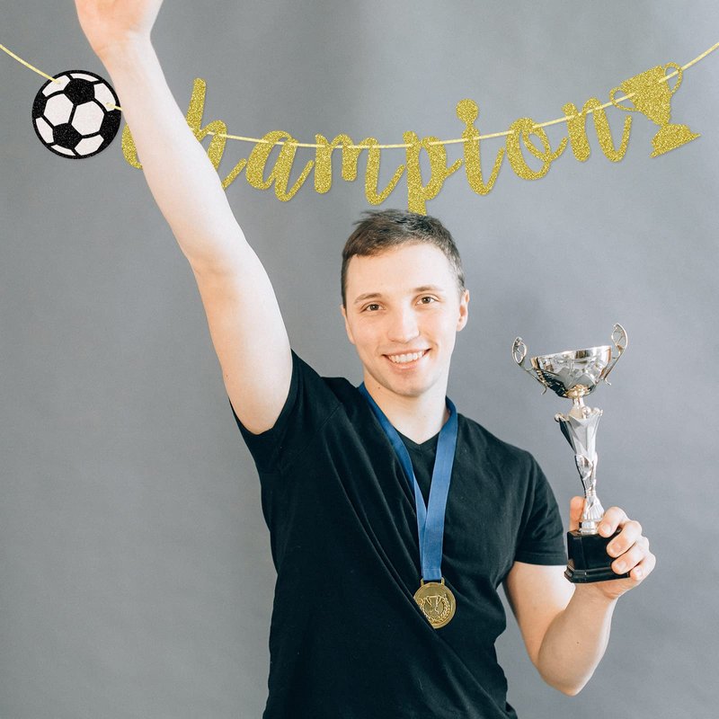 Champion Banner, Sports Theme Banner, Soccer Game Day Party Decorations, Gold Glitter