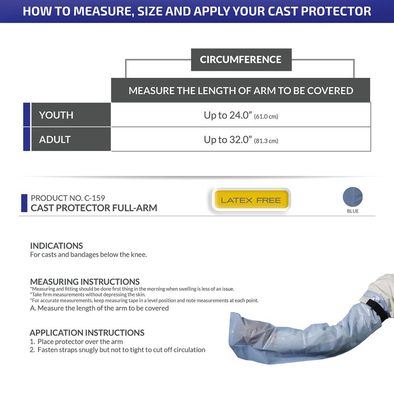 - Measure length of the leg to be covered. Available Sizes: Youth Full Arm (Up to 24 Inches) and Adult Full Arm (Up to 32 Inches).