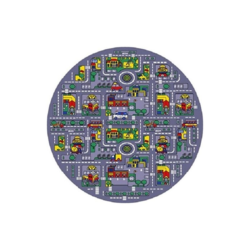 Champion Rugs Race Track City Traffic MAP Non Slip/Gel Back Area Rug (8 FT X 8 FT (Round))