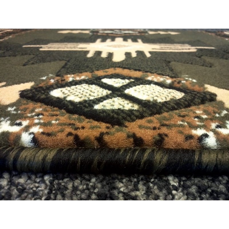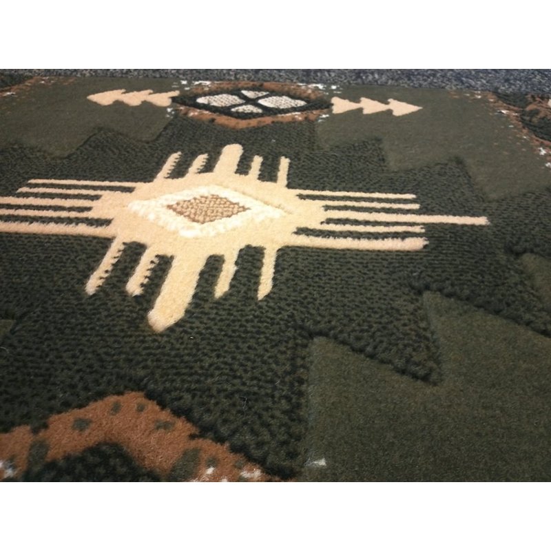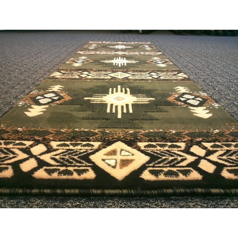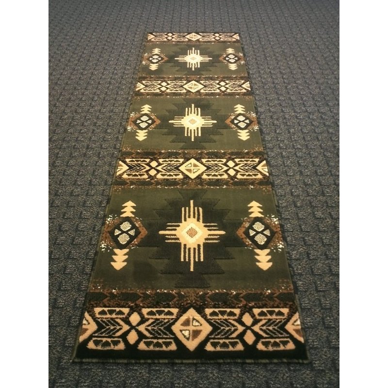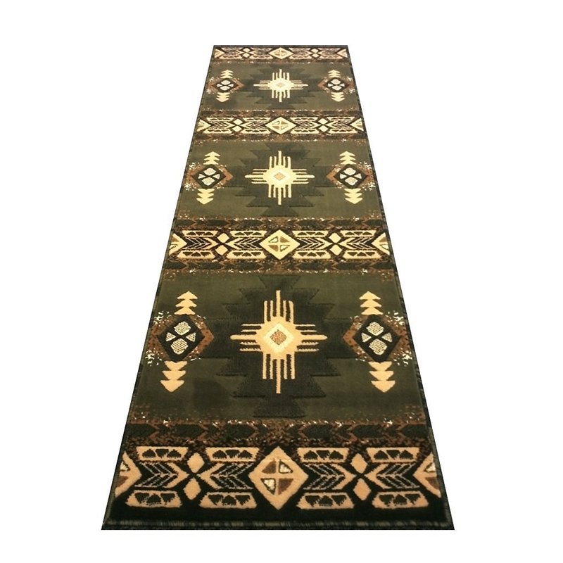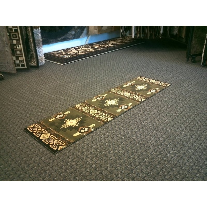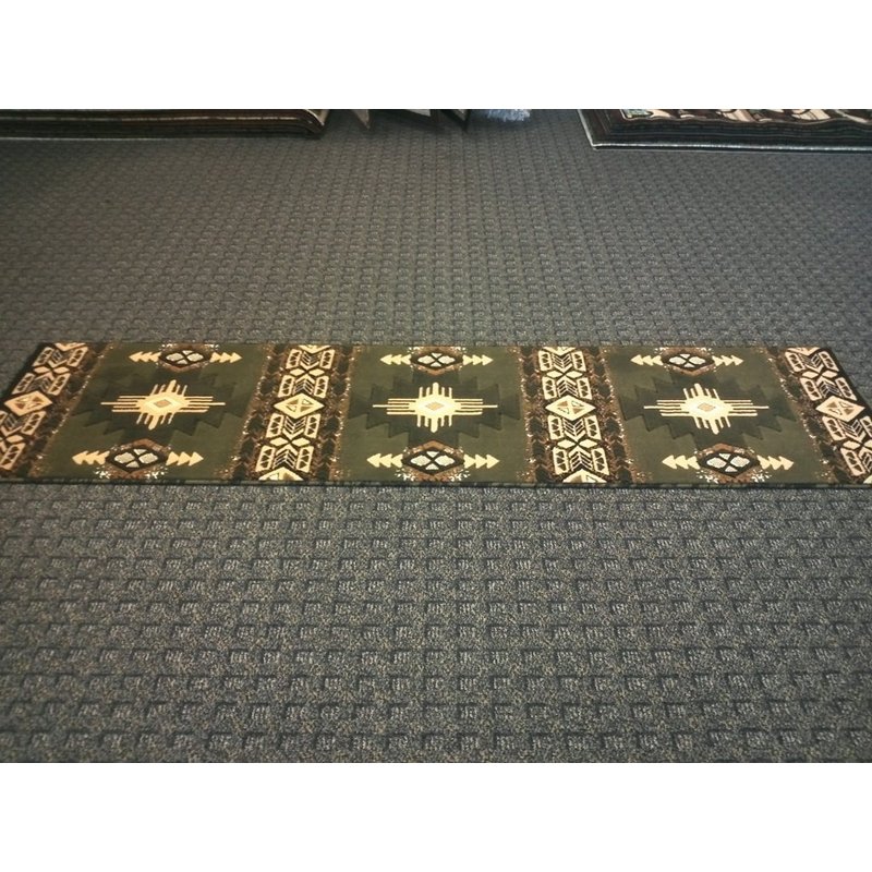 Champion Rugs South West Runner Rug Green Design # CR53 (2 Feet X 7 Feet Runner)