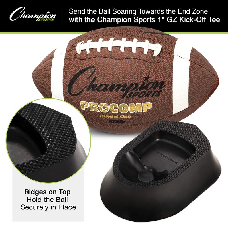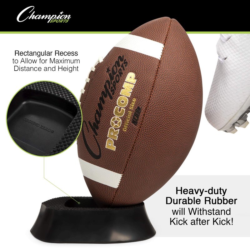 - IDEAL KICKING ANGLE: The Champion Sports kick-off tees feature a rectangular divot that places the football at a forward tilting position - a prime angle for optimal distance and trajectory.