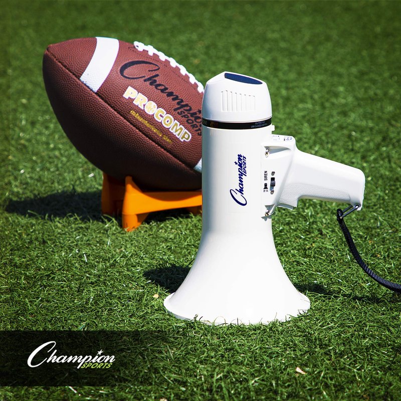 - Powerful megaphone: this professional megaphone by Champion Sports is a strong, effective amplification device that has power range from 4 to 8 watts - allowing it to reach up to 800 yards! Your voice will be clear and understood.