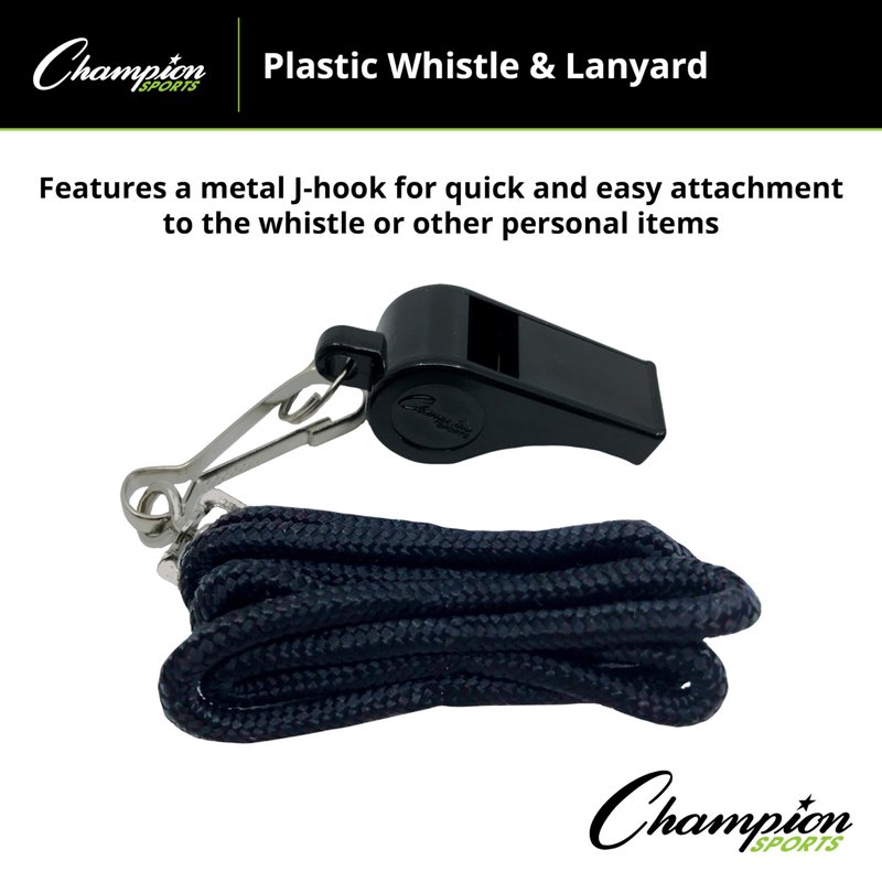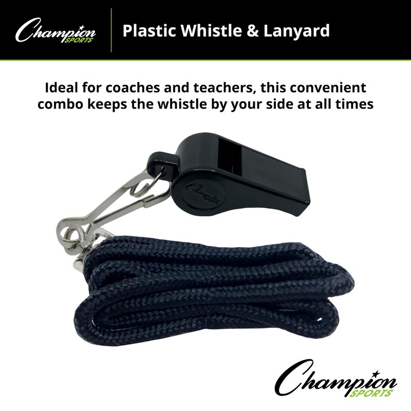 Champion Sports Plastic Whistle with Lanyard - 12 Pack