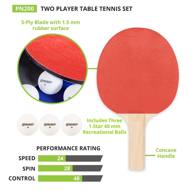 Champion Sports PN200 Table Tennis Set: 2 Player Ping Pong Accessories Kit with 2 Paddles & 3 Balls, Indoor Ping Pong Equipment for Men, Women & Kids