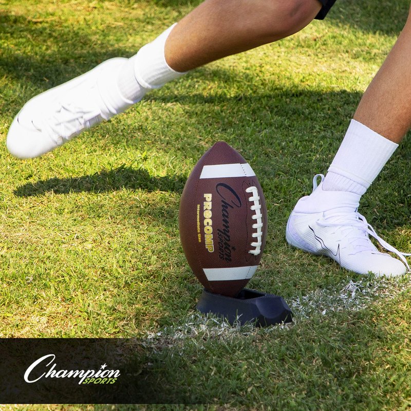 - IDEAL KICKING ANGLE: The Champion Sports kick-off tees feature a rectangular divot that places the football at a forward tilting position - a prime angle for optimal distance and trajectory.
