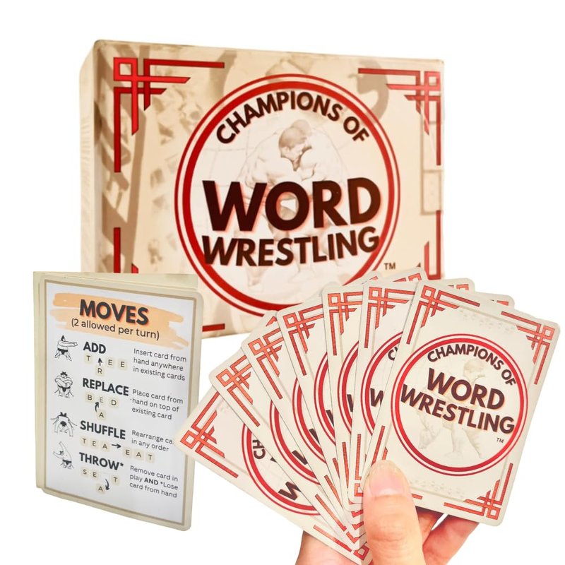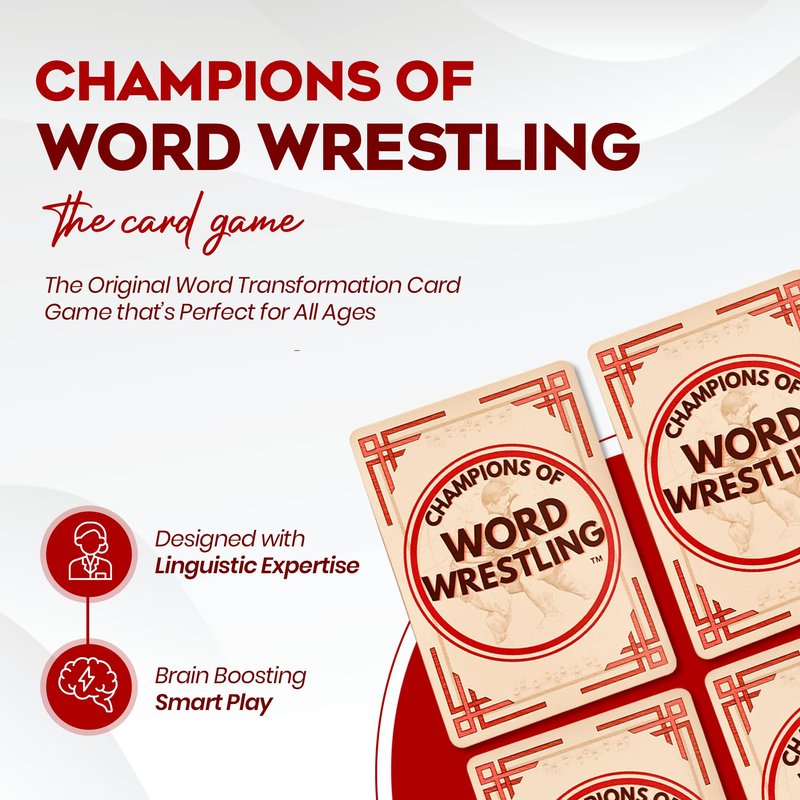 Champions of Word Wrestling, Word Card Game for Adults and Family Board Game Night, Premium Playing Cards, Spelling Game for Kids & Seniors, Travel Game & Party Game, 2-4 Players, Ages 8 & Above