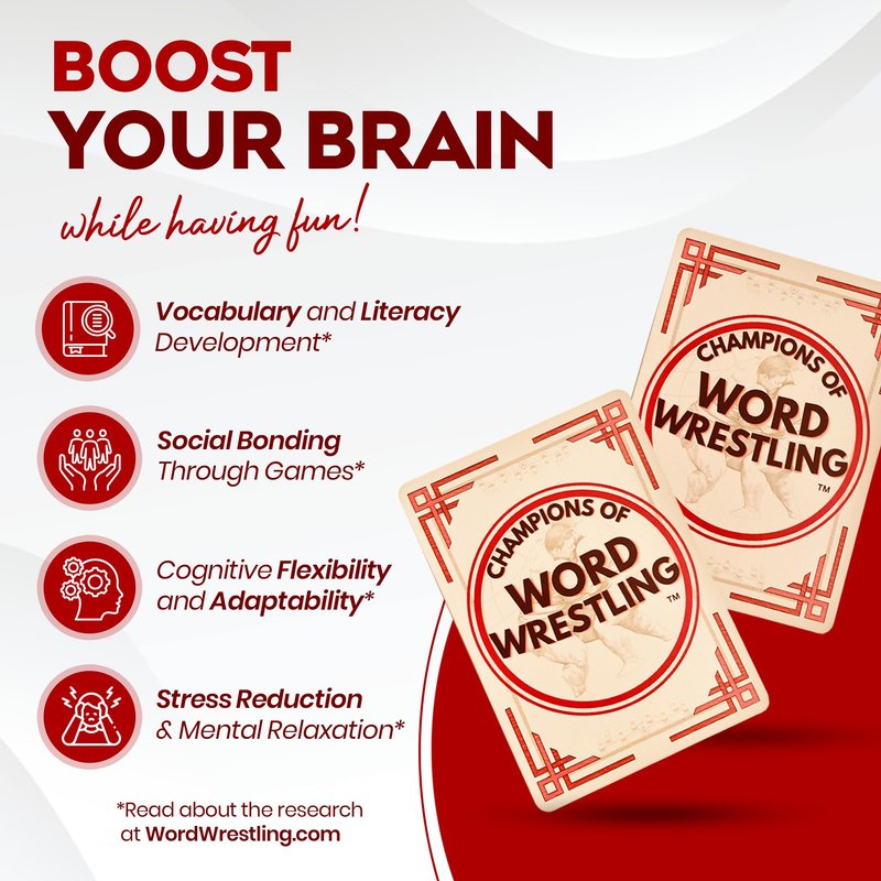 - š§ BOOST YOUR BRAIN WHILE HAVING FUN: Word Wrestling isnāt just a fun game; itās a powerful brain-boosting tool! Sharpen your vocabulary and mental agility with this innovative wordgame. Perfect for both spelling games for kids ages 8-10 and adult brain challenges like scrabble card game, itās an exciting way to keep your mind sharp while enjoying friendly competition.