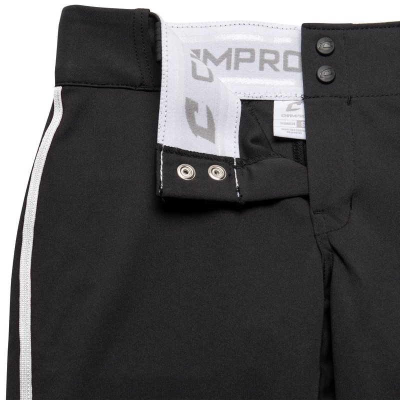 Champro Women's Standard Tournament Low Rise Softball Pants with Side, Black, White Pipe, Medium