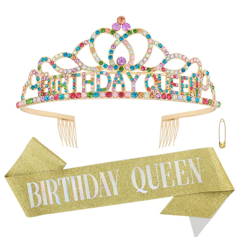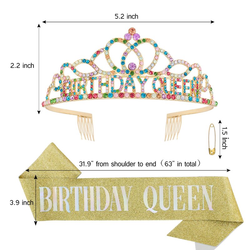 Chanaco Birthday Crown Birthday Sash for Women Birthday Queen Sash Tiaras for Women Happy Birthday Decorations Birthday Gifts for Women