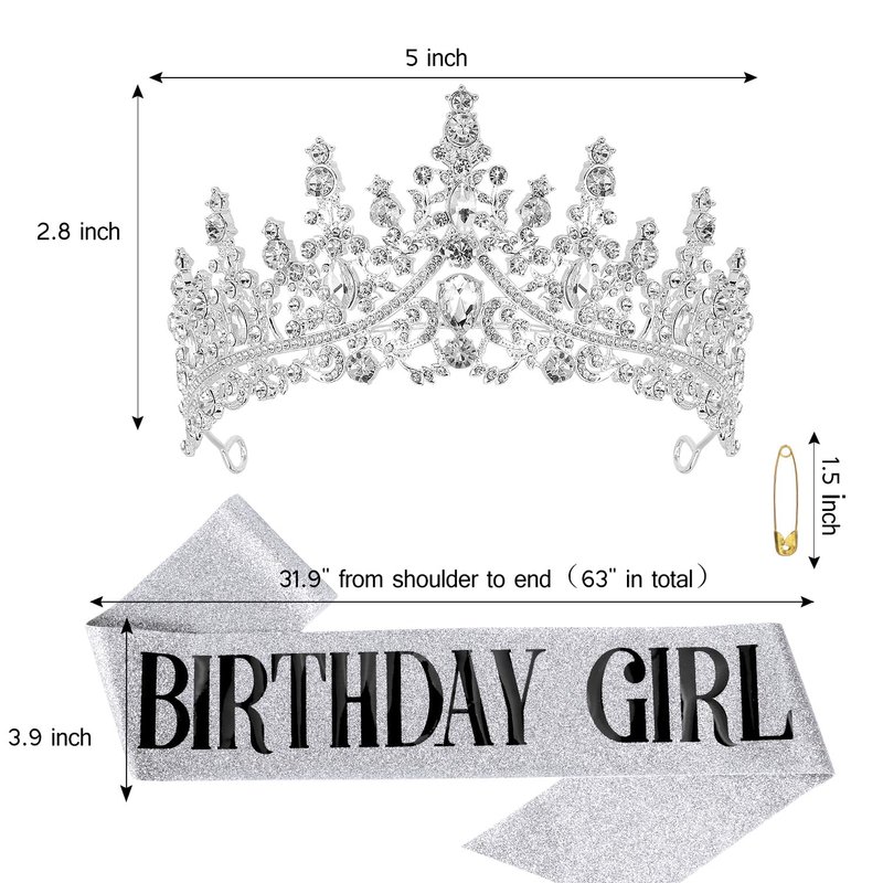- Item Information - Crown Size: 5*2.8 inches, Sash Size: 31.9*3.9 inches. Total Weight: 0.18 lb. It's a perfect gift choice for girls, women, lady, sisters and many female friends for birthday parties, costume props, role-playing, sleepover party etc.