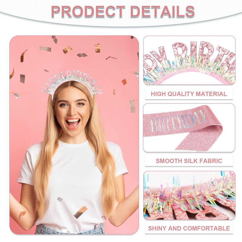 - [Elegant Appearance]: Sparkling birthday sashes and headband will make you stunning at the party. No matter where you are, you are the most shining princess and will be the center of attention. Just leave a colorful mark on your birthday and give yourself a grand ceremony.