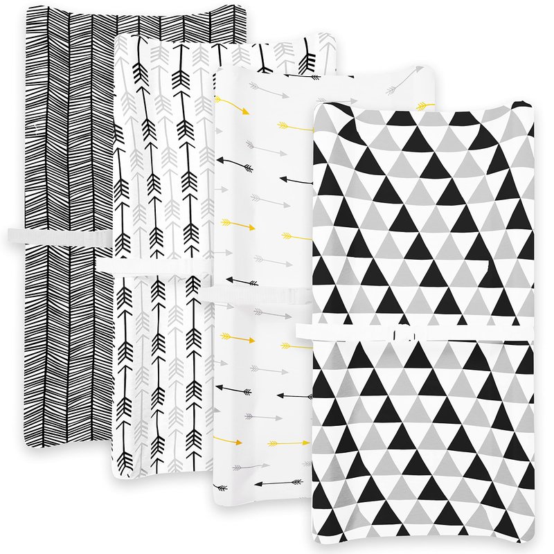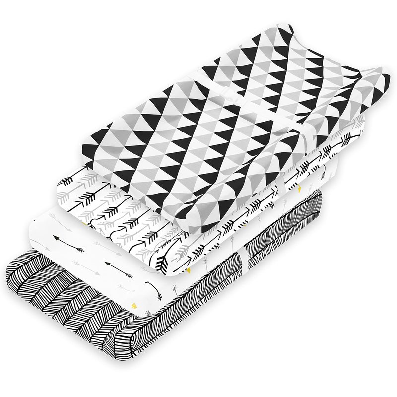 Designed in stylish, black and white modern prints, our 4-pack of pure jersey changing pad covers is perfect to use in both boys’ and girls’ nurseries. Simply pop the elasticated cover over your baby’s changing mat for extra protection and comfort while bathing or changing their diaper.