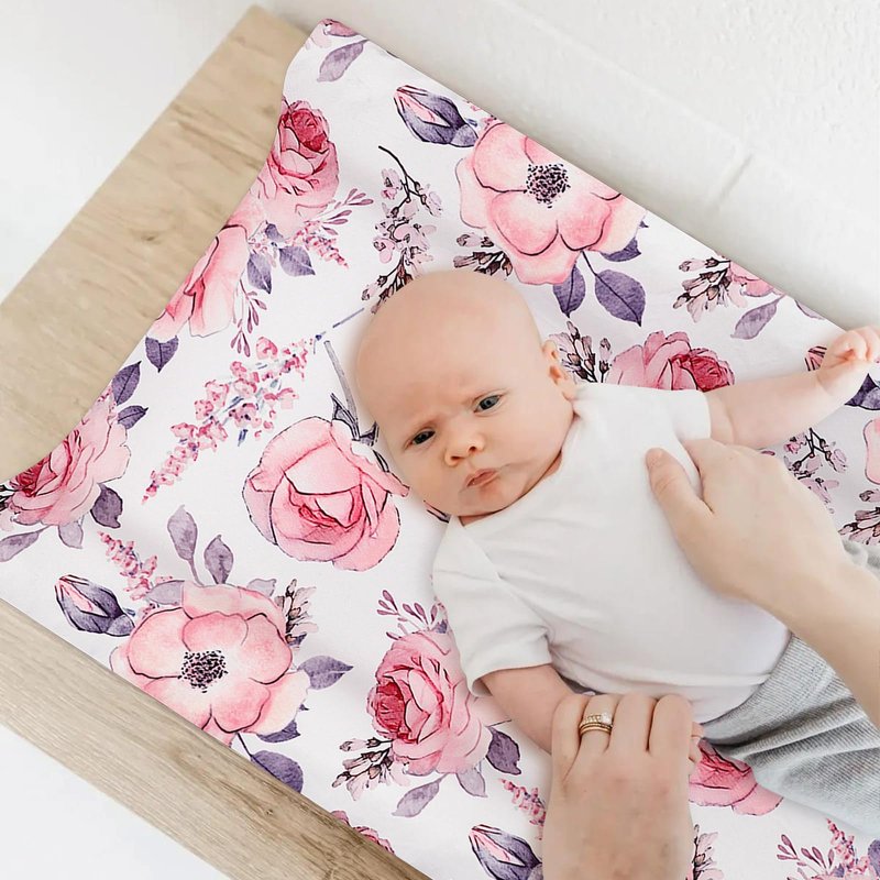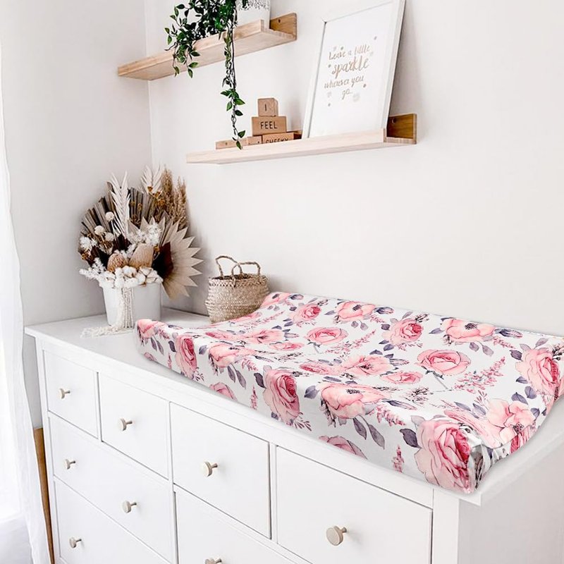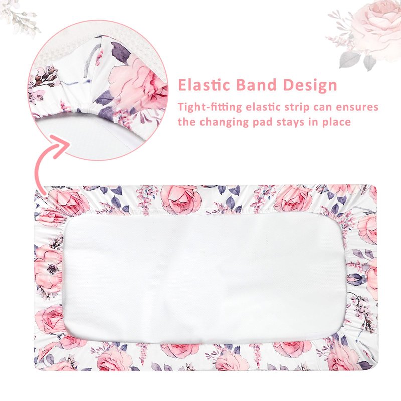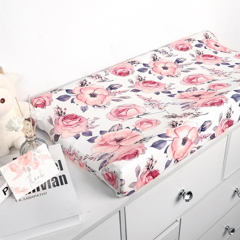 Changing Pad Cover, Baby Changing Table Cover, Diaper Changing Pad Sheet for Girls, Super Soft Breathable, Pink Floral