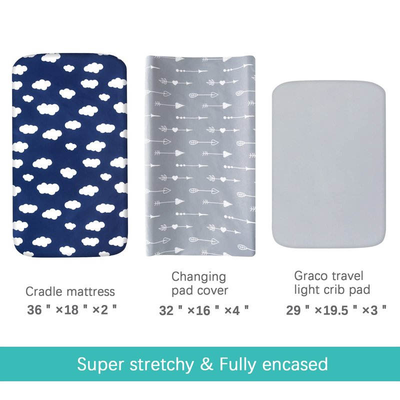 - Universal Fit: 32 x 16 inches, flexible fit for most baby diaper changing pads. Could also work as cradle sheets and bassinet sheets. Elastic skirt, easy applying within seconds.