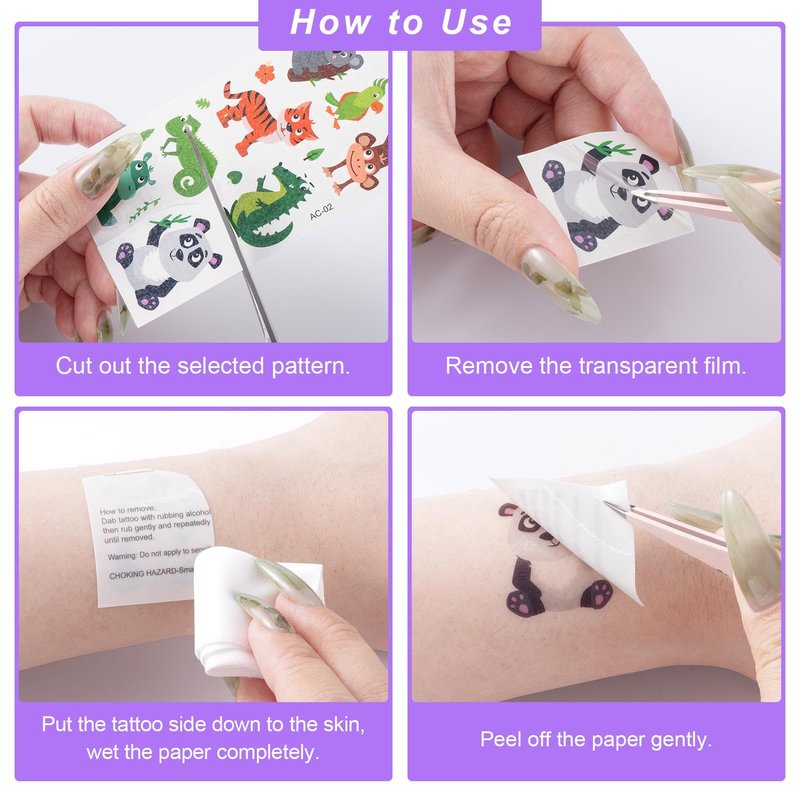 【Long Lasting】: The kids tattoos temporary safari party favors can stay 4-6 days or more. You can remove it easily with baby oil, makeup remover or rubbing alcohol.