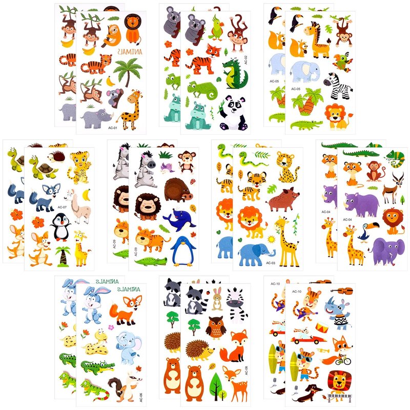 【Package Included】: You will receive 20 sheets animal tattoos for kids in the package, total 242pcs kids tattoos temporary stickers, cute patterns and colorful cartoon style bring your kids more fun!
