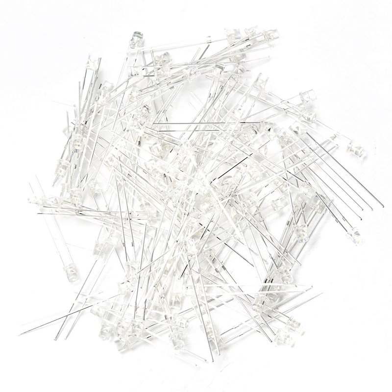 Chanzon 100 pcs 3mm White LED Diode Lights (Clear Flat Transparent DC 3V 20mA) Bright Lighting Bulb Lamps Electronics Components Indicator Light Emitting Diodes