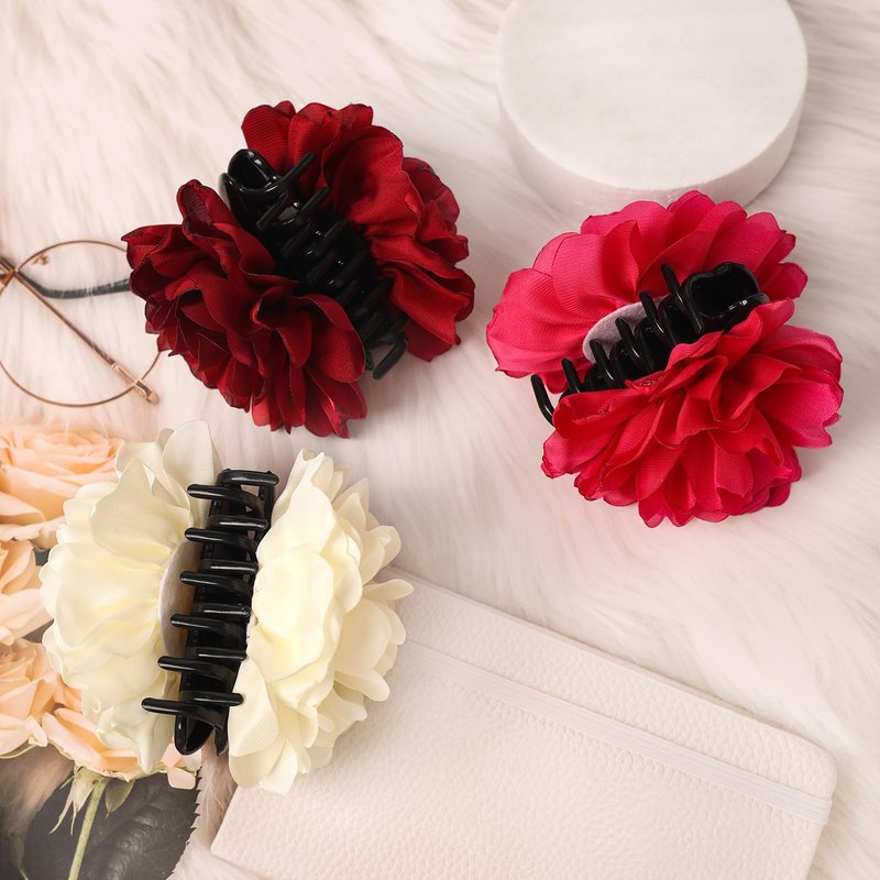 - Satin Flower Hair Claws Design:The flower design of this grip clip is unique and is a current trend element.wearing it has a retro atmosphere.