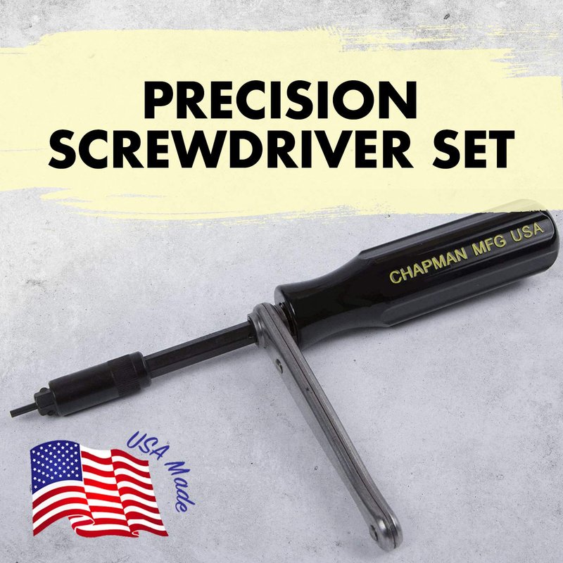 This screwdriver set features our new "chocolate box" index diagram, identifying the type and size of each. All the tools in this kit are interchangeable, offering 125+ tool combinations. The midget ratchet is unbeatable in tight spaces and provides the leverage of roughly 4 large screwdrivers! Chapman tools are made in Durham, CT from American made materials.