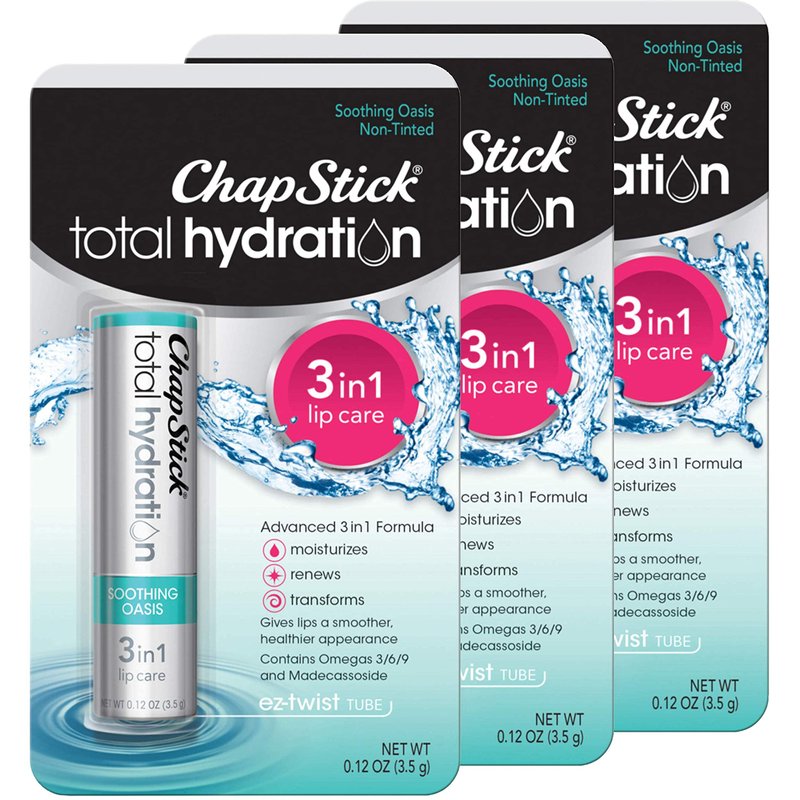 ChapStick Total Hydration 3-in-1 Lip Care Soothing Oasis 0.12 oz (Pack of 3)