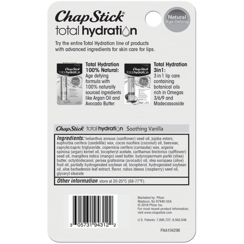 ChapStick Total Hydration Lip Care Soothing Vanilla - Pack of 2