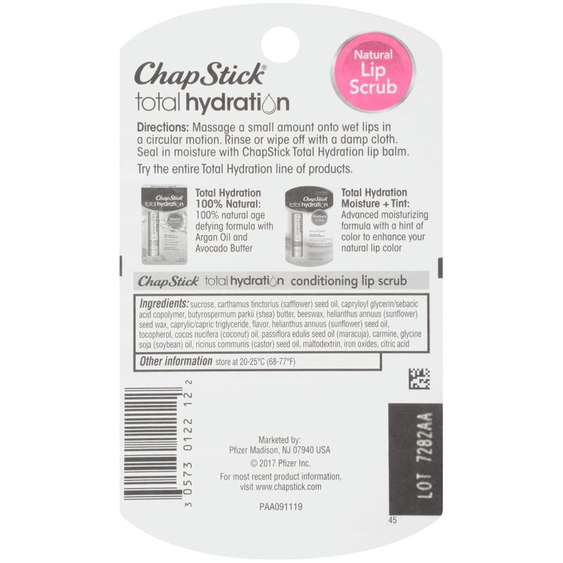 - One 0.27-ounce ChapStick Total Hydration Sugar Plum Conditioning Lip Scrub Jar, Lip Exfoliator