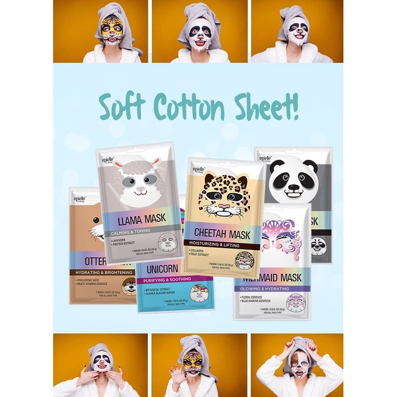 epielle Mermaid Mask comfortably adheres to the face like a second skin that tightly seals in moisture for a healthier look and radiant glow. The combination of Collagen and fruit extract help to moisturize and lift skin for a more youthful appearance. Rejuvenate your skin with this playful Mermaid print mask for some fun in your skin care routine! Formulated without animal oil, mineral oil, parabens and petrolatum. Take better care of your skin with epielle.