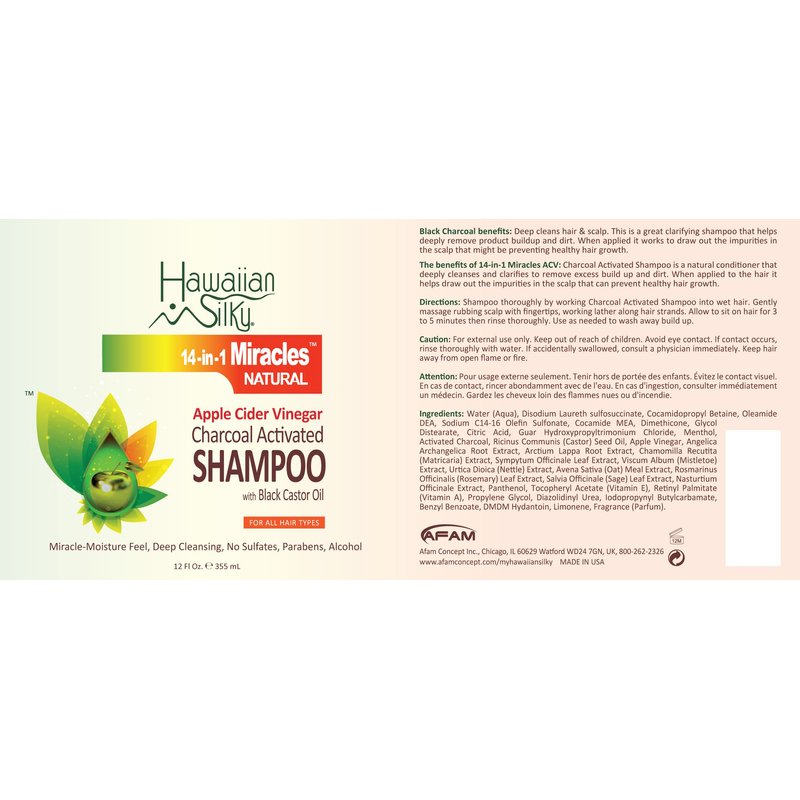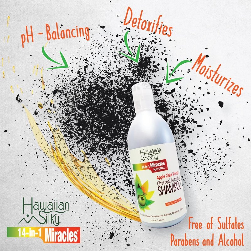 - APPLE CIDER VINEGAR Charcoal Activated Shampoo contains no harmful additives. Miracle-moisture feel for deep cleansing with no Sulfates, Parabens, or Alcohol. Get to the Root of the Problem. It all starts with a healthy scalp. This invigorating blend of organic extracts and essential nutrients fortifies and energizes hair from roots to tips, reducing hair loss due to breakage.