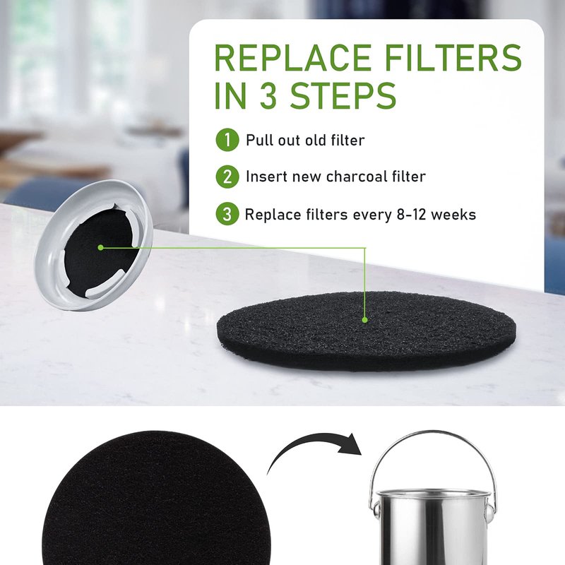 Refresh Yourself: Our filters are designed to absorb and trap food odors inside your compost bin, giving you fresh and clean indoor air. Say goodbye to unpleasant smells and hello to a clean, fresh kitchen!