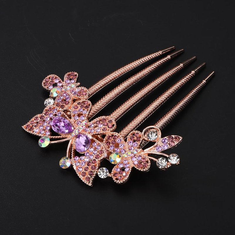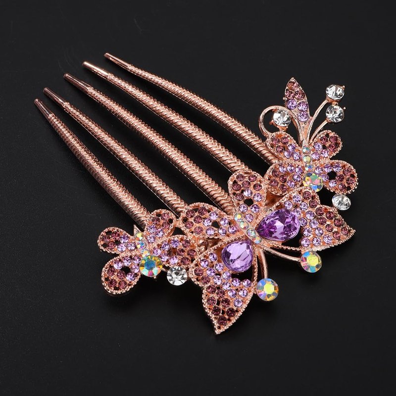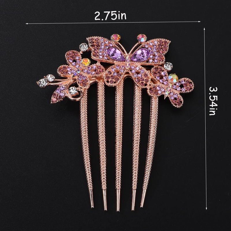 Chargances Boho Rhinestone Butterfly Hair Comb Bridal Wedding Purple Crystal Hair Side Combs with Long Teeth Sparkly Hair Accessories for Women and Girls (Purple)