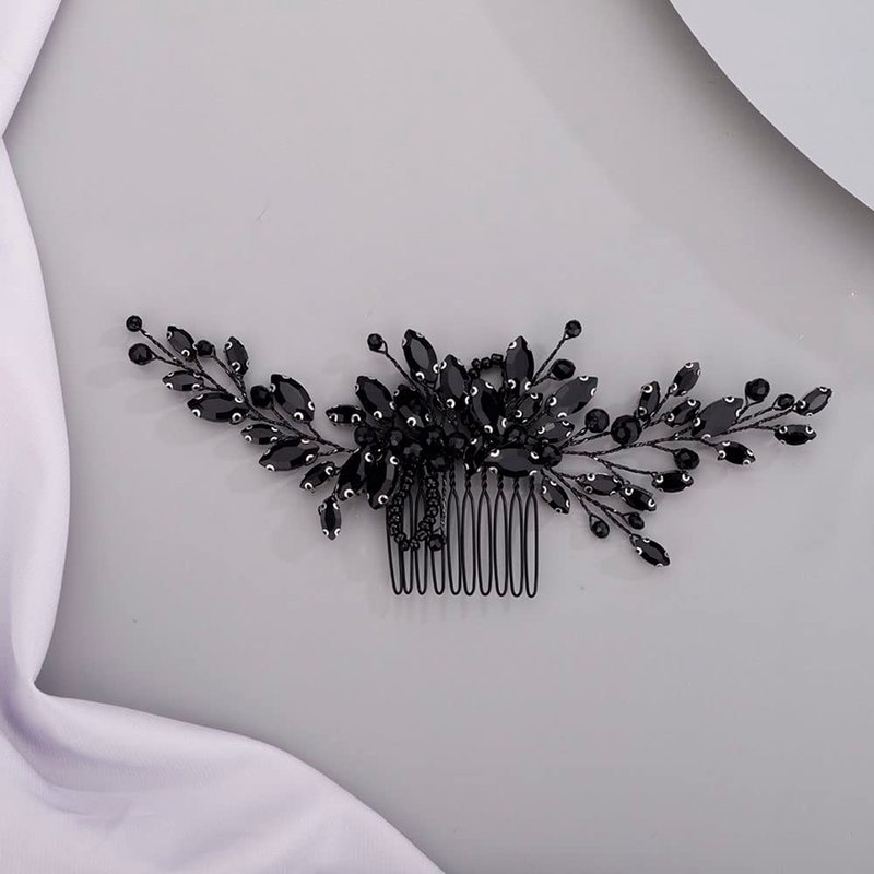 Chargances Bridal Black Crystal Hair Comb Gothic Black Wedding Hair Vine Side Comb Rhinestone Hair Accessory Wedding Headpiece Prom Party Festival for Women and Girls (Style 3)