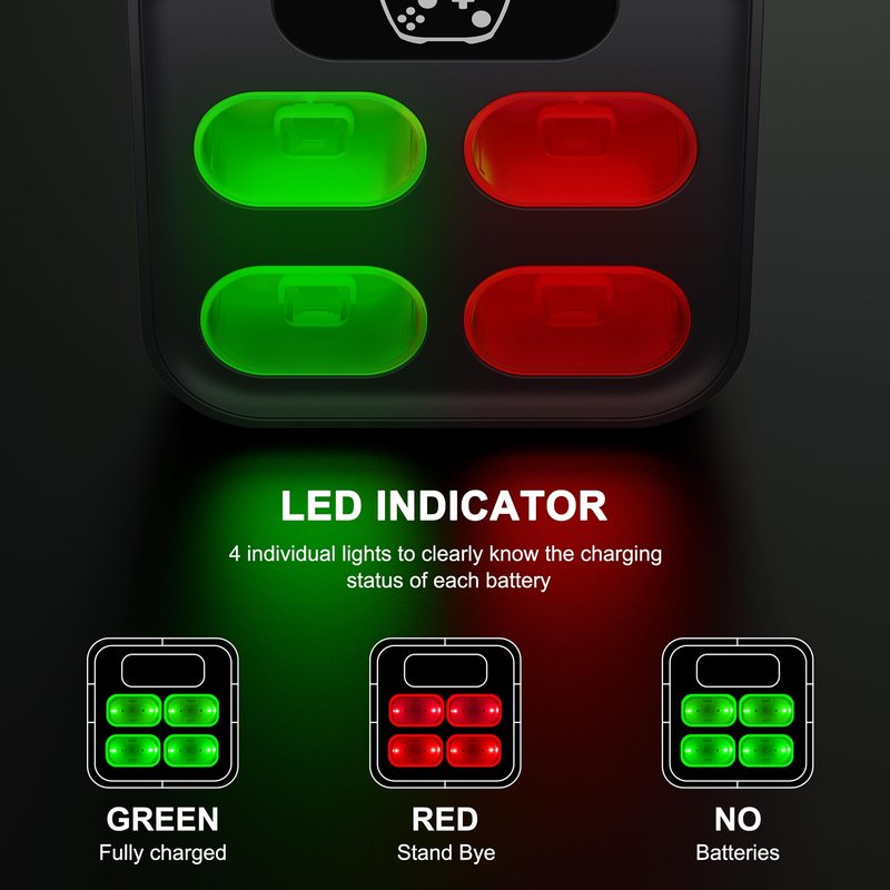 - [LED Indicates Charge Status] There is 4 individual indicators of the xbox series x controller battery pack, charge station for xbox one controller battery packs changes colors between Red (Charging) and Green (Ready), making it easy to tell which packs are good to go when you need to swap