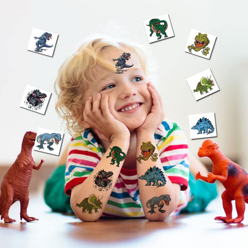 - ⚡Multifunction Uses -- These awesome dinosaur tattoos can be used in various occasions, birthday parties, christmas party, gift bag fillers, party favors for kids, dinosaur party decorations, kids party supplies!! You can apply them to your body or some smooth objects, for example, glass, stationery, paper, stainless steel, plastic, mobile phone shell