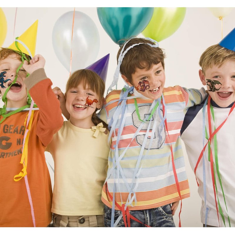 Your kid wants a tattoo? No need to worry mom! These are kids removable temporary tattoos! With these fake tattoos, your kids can deck themselves out with colourful designs that wash or peel off later. Have fun with our collection of removable, temorary tattoos for kids. Features: CHARLENT 148 PCS Individually Wrapped Dinosaur Dragon temporary tattoos for kids party favors .