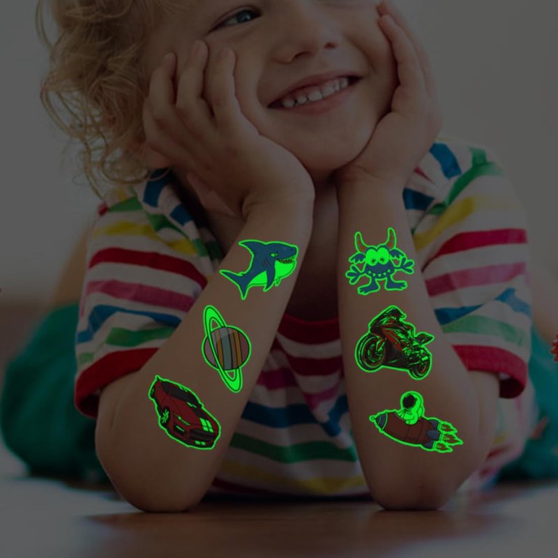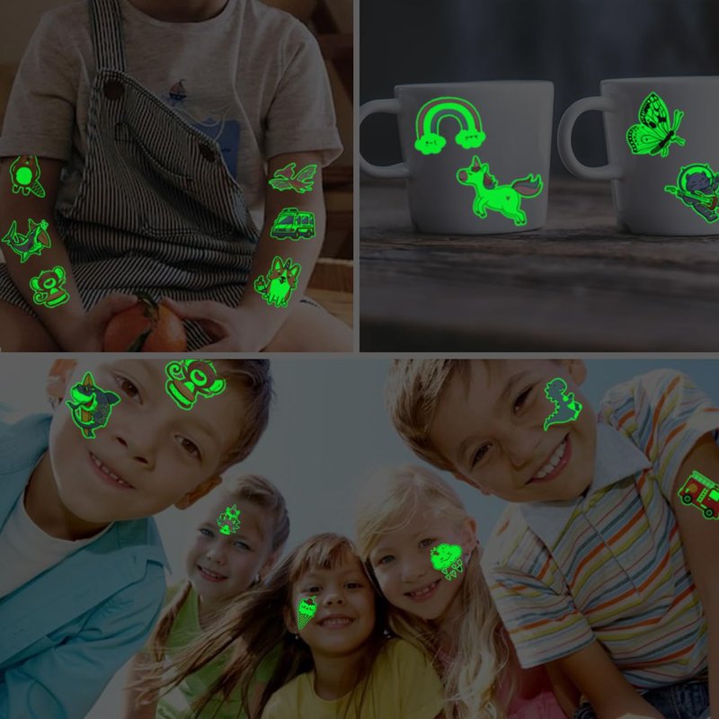 - ⚡Children’s Tattoos Glow in The Dark for All Occasions -- These awesome tattoos can be used in various occasions, such as birthday party supplies, party decorations, party favors, party bags, DIY decorations, luminous party supplies, pool and the beach or gift for kids and rewards. Kids temporary tattoos are the best party favors and goodie bags fillers ever for any kind of celebration!