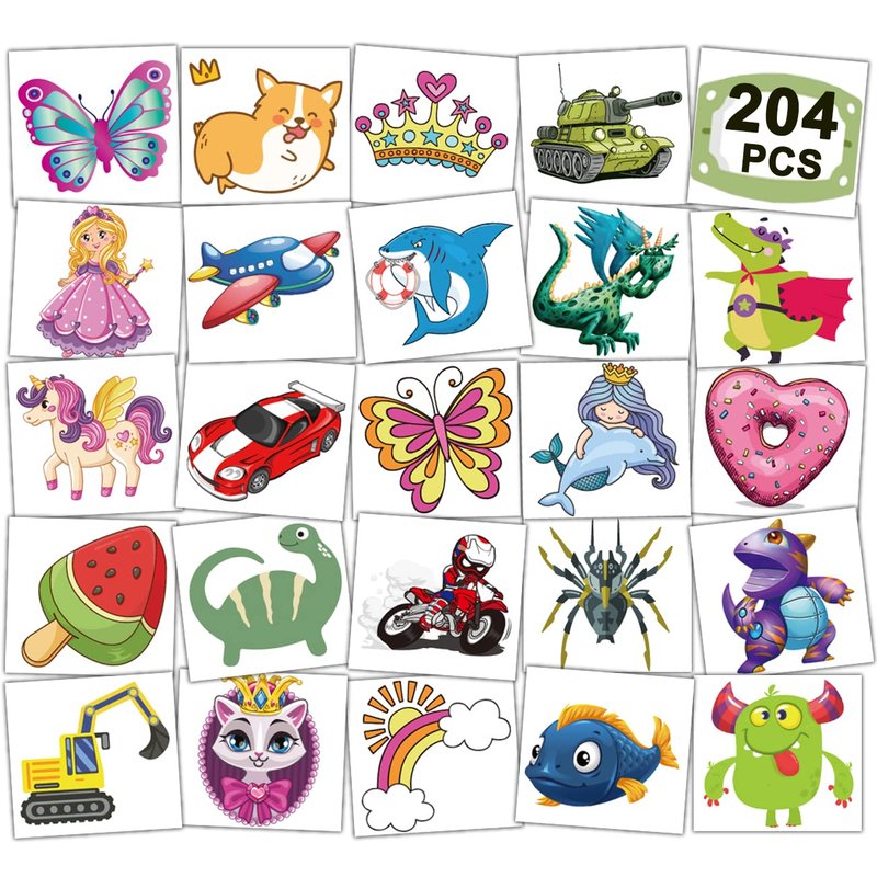 - ⚡Individually Wrapped Sheets No Need to Cut -- 204 PCS tattoos individually wrapped to be easily included in a party gift bag. Easy to share,even if a lot of people's parties, you can have a different tattoo with others.These adorable tattoos will keep you and your little ones – and their friends – occupied for a while. Great for playdates, parties, or rainy days.