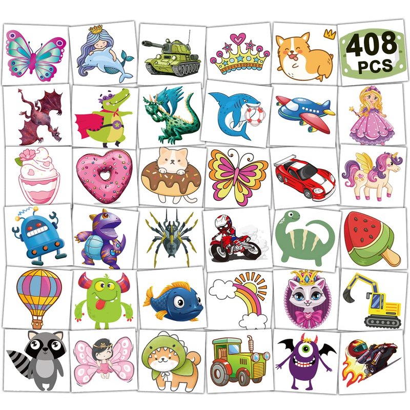- ⚡Individually Wrapped Sheets No Need to Cut -- 408 PCS tattoos individually wrapped to be easily included in a party gift bag. Easy to share,even if a lot of people's parties, you can have a different tattoo with others.These adorable tattoos will keep you and your little ones – and their friends – occupied for a while. Great for playdates, parties, or rainy days.