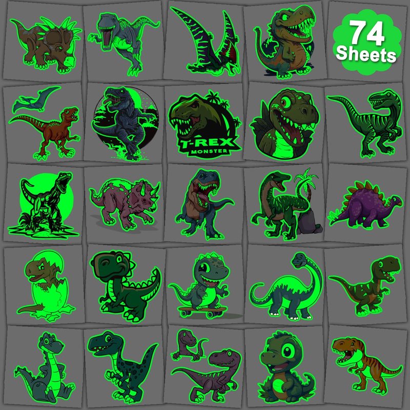 Package contents: There are 74 sheets of luminous Dinosaur elements temporary tattoos
