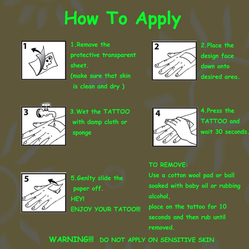- ⚡Premium Quality,Waterproof and Sweat-resistant -- These unique tattoos typically last about 3-6 days.Can be removed with oil, makeup remover, or by scrubbing off. Safe to wear at the beach or in the shower or pool.