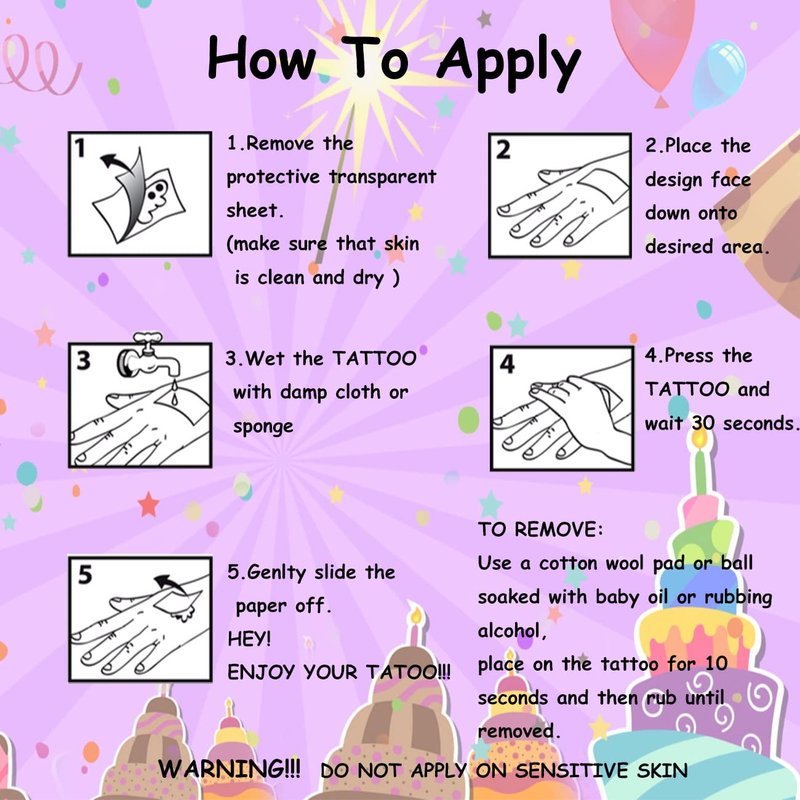 Package contents: There are 14 sheets of Birthday elements temporary tattoos