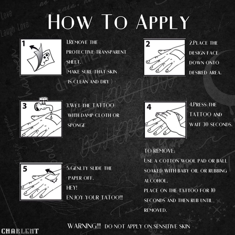 - ⚡Friendly Reminder --Tattoo stickers must not be wet with water in advance, and it must be wet on the body, otherwise the tattoo stickers will not stay on the body for a long time.Please avoid rubbing the tattoo hard as this will damage it.
