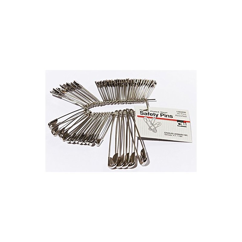 CHARLES LEONARD SAFETY PINS ASSORTED SIZES 50PK (Set of 3)