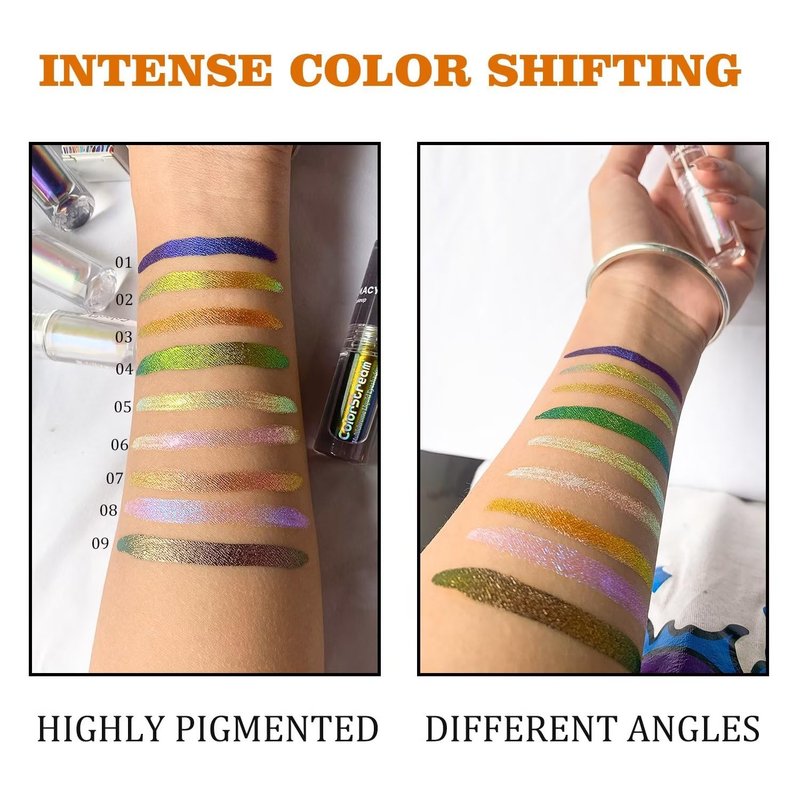 - 【CHARMACY Multichrome Liquid Eyeshadow】A multi-faceted, multi-dimensional and transformative liquid eyeshadow. The unrivaled three-tone multichrome finish takes your eyes to the next dimension with color-changing technology innovations and liquid structure, creating the illusion of professional multi-layered eye makeup.